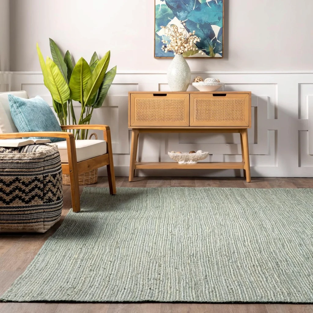 Jute Area Rug For Living Room| Green colour Rug | Eco Friendly Farmhouse Floor Rugs