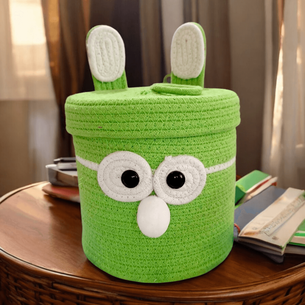 - Reversible & handmade - Indoor/outdoor versatility - Supports eco-conscious livingHandmade Bunny Cotton Rope Storage Basket – Neon & Red | 7×7 Inch | Eco-Friendly Organizer – Mr. Bunny