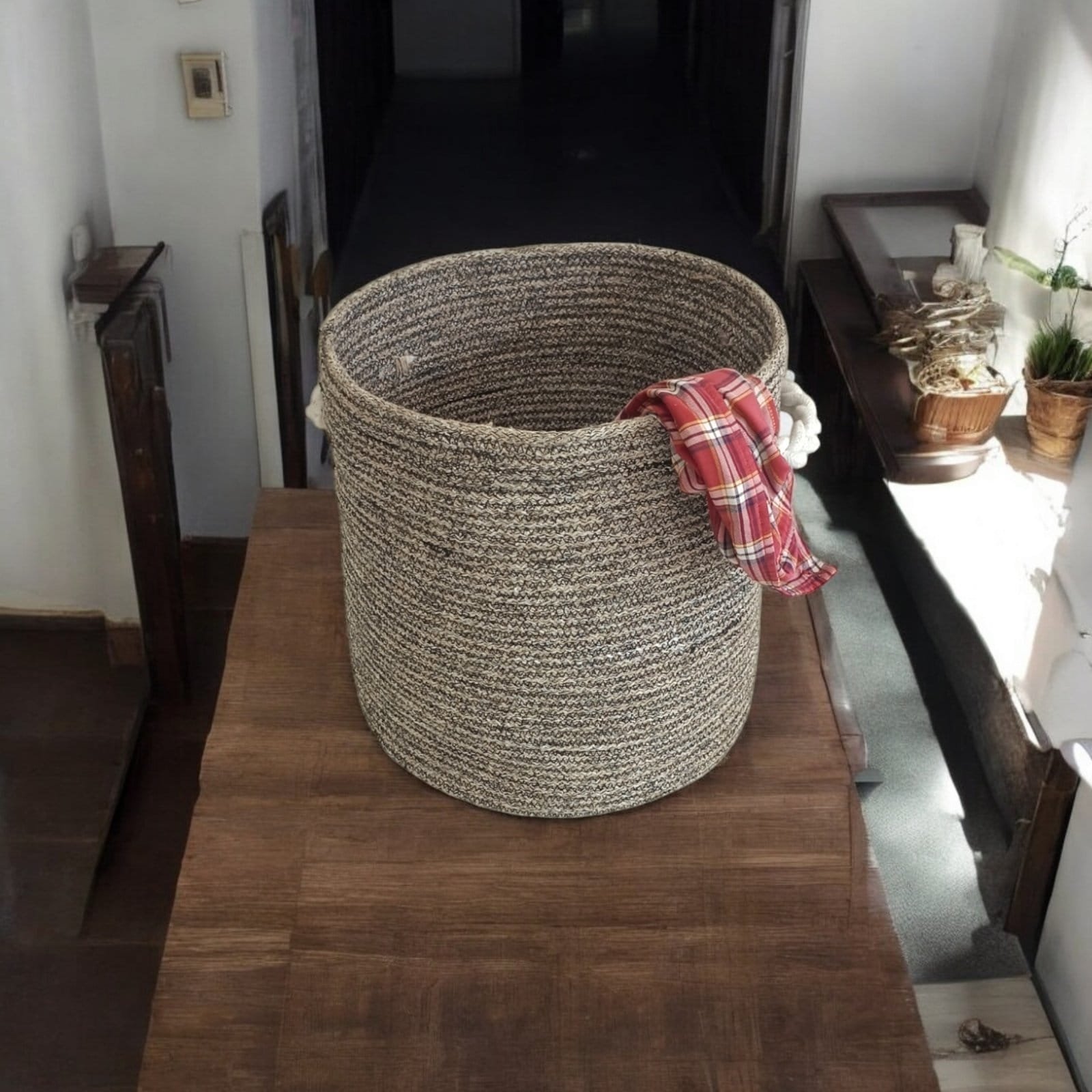 Crafted from premium jute cotton rope, this laundry basket not only looks great but is built to last. Our braided technology ensures a sturdy structure that can endure daily use, making it a reliable choice for all your storage needs.