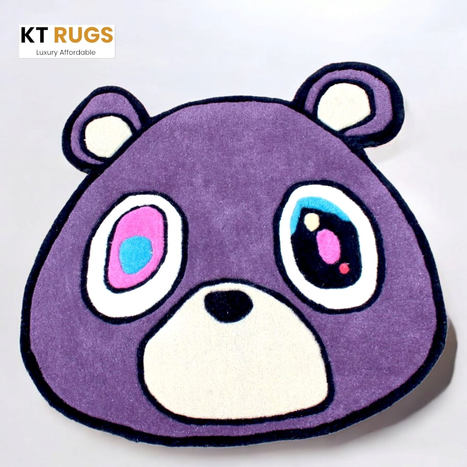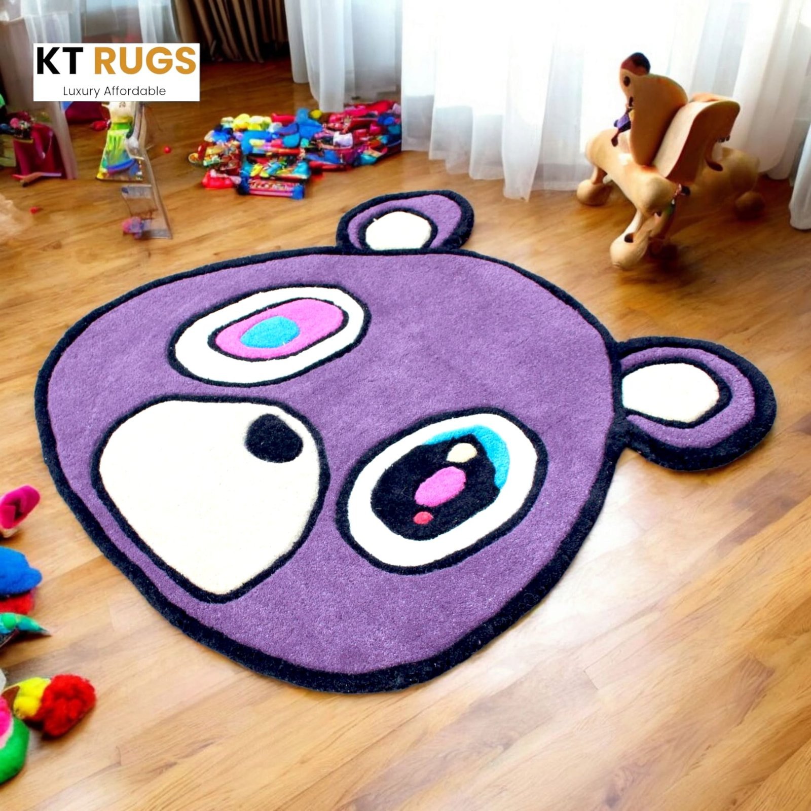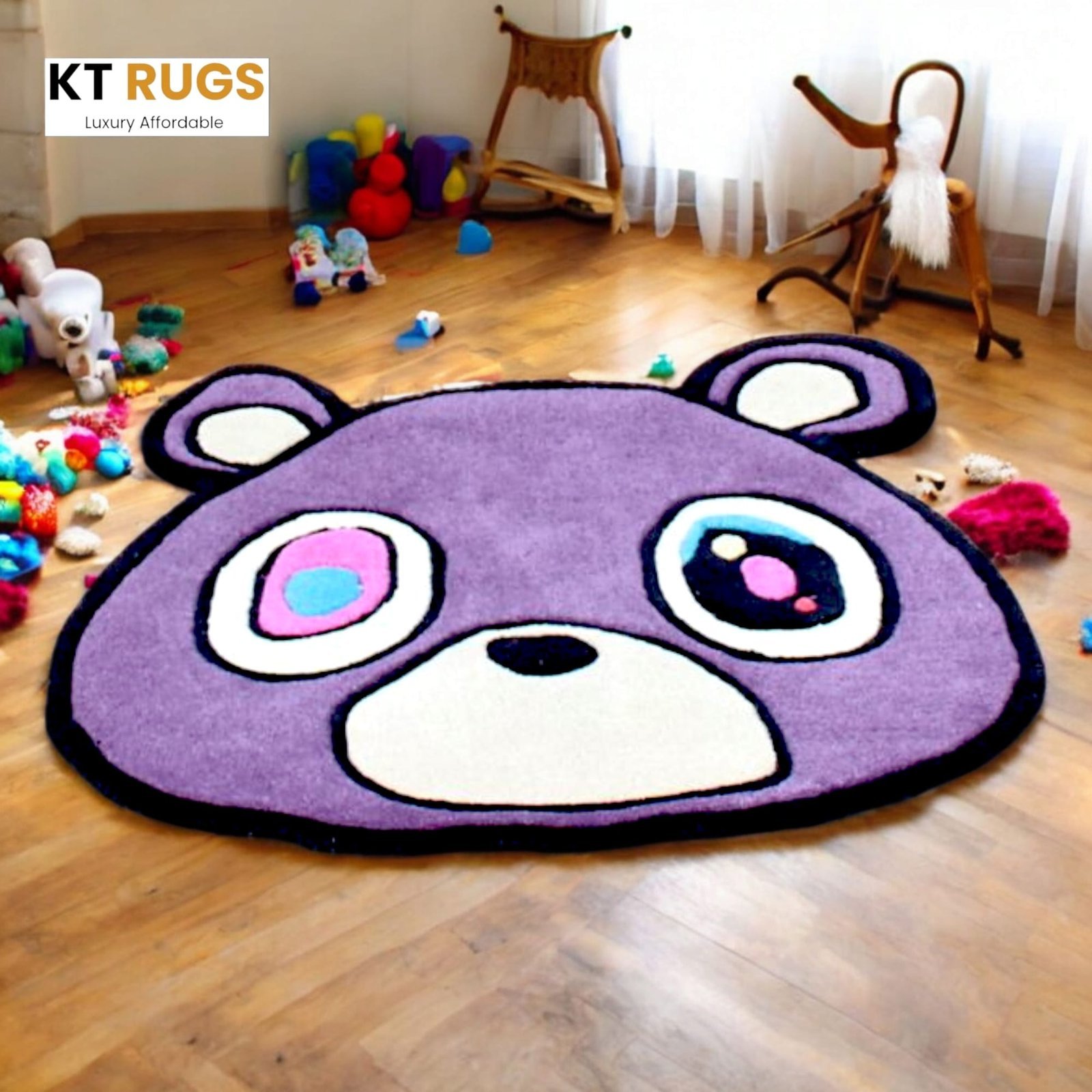 Purple Bear Kids Area Rug, Cartoon Design, Luxury Affordable Collection